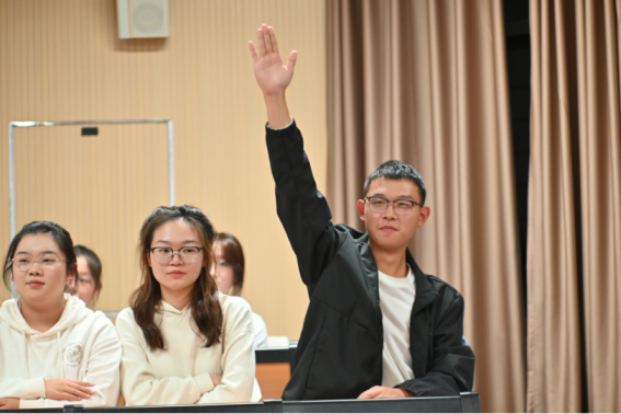 在互动问答环节,同学们踊跃抢答,通过这些问题,他们对国家的发展历程、党和人民的奋斗史有了更深入的理解,激励自己在未来的道路上不忘初心、砥砺前行。