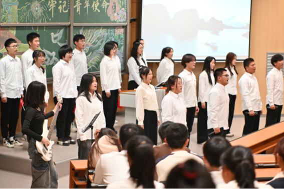 歌曲《有我》旋律悠扬,唱出了青年人燃烧青春、奉献祖国的铿锵誓言。朗诵《伟大祖国展华章,青年使命勇担当》回顾了祖国的百年奋斗史,呼吁同学们在新时代勇挑重担,担负起历史赋予的使命。歌曲《小美满》曲调婉转,歌声悠扬,传递了对同学们幸福美满人生的美好祝愿。