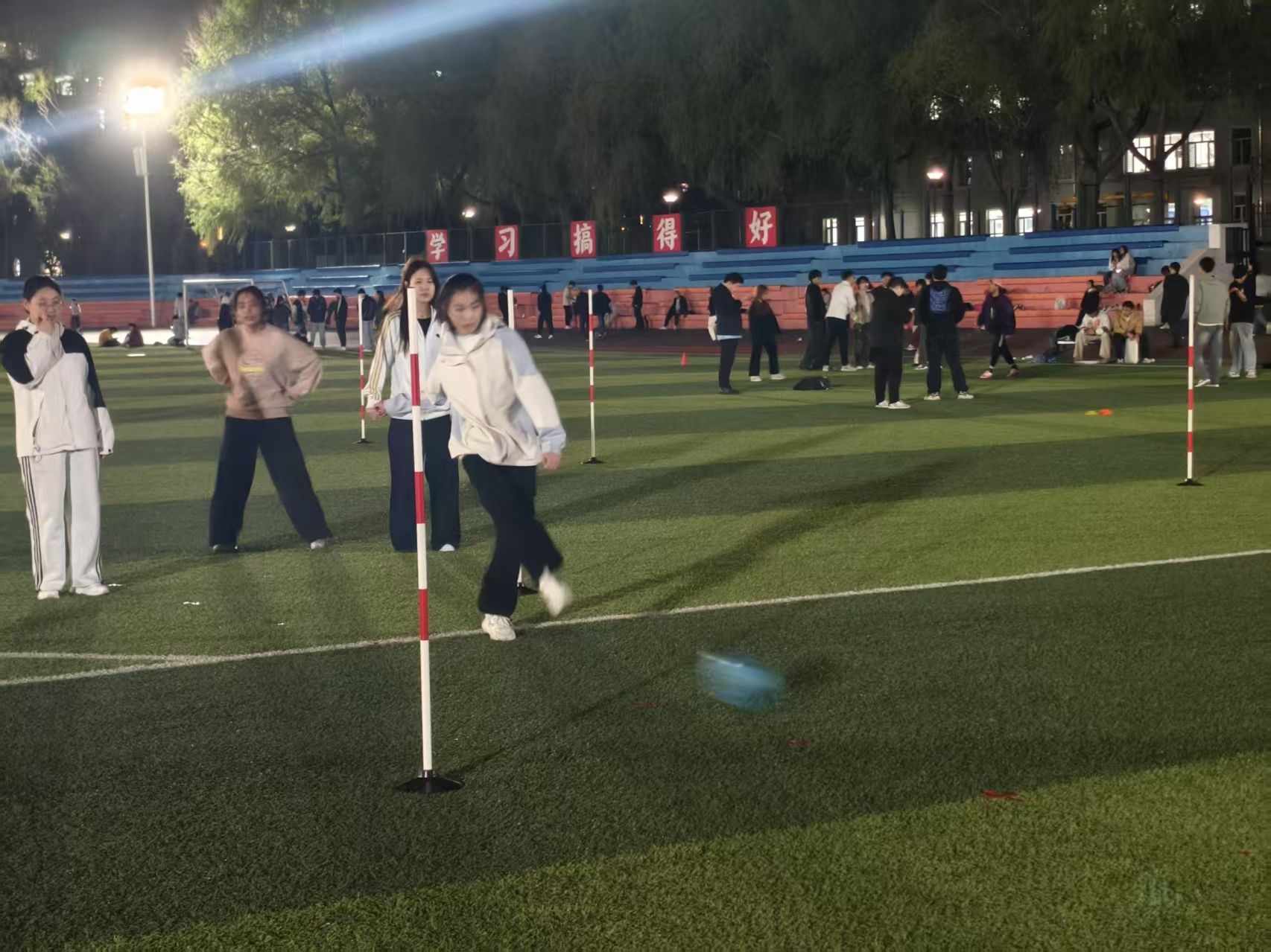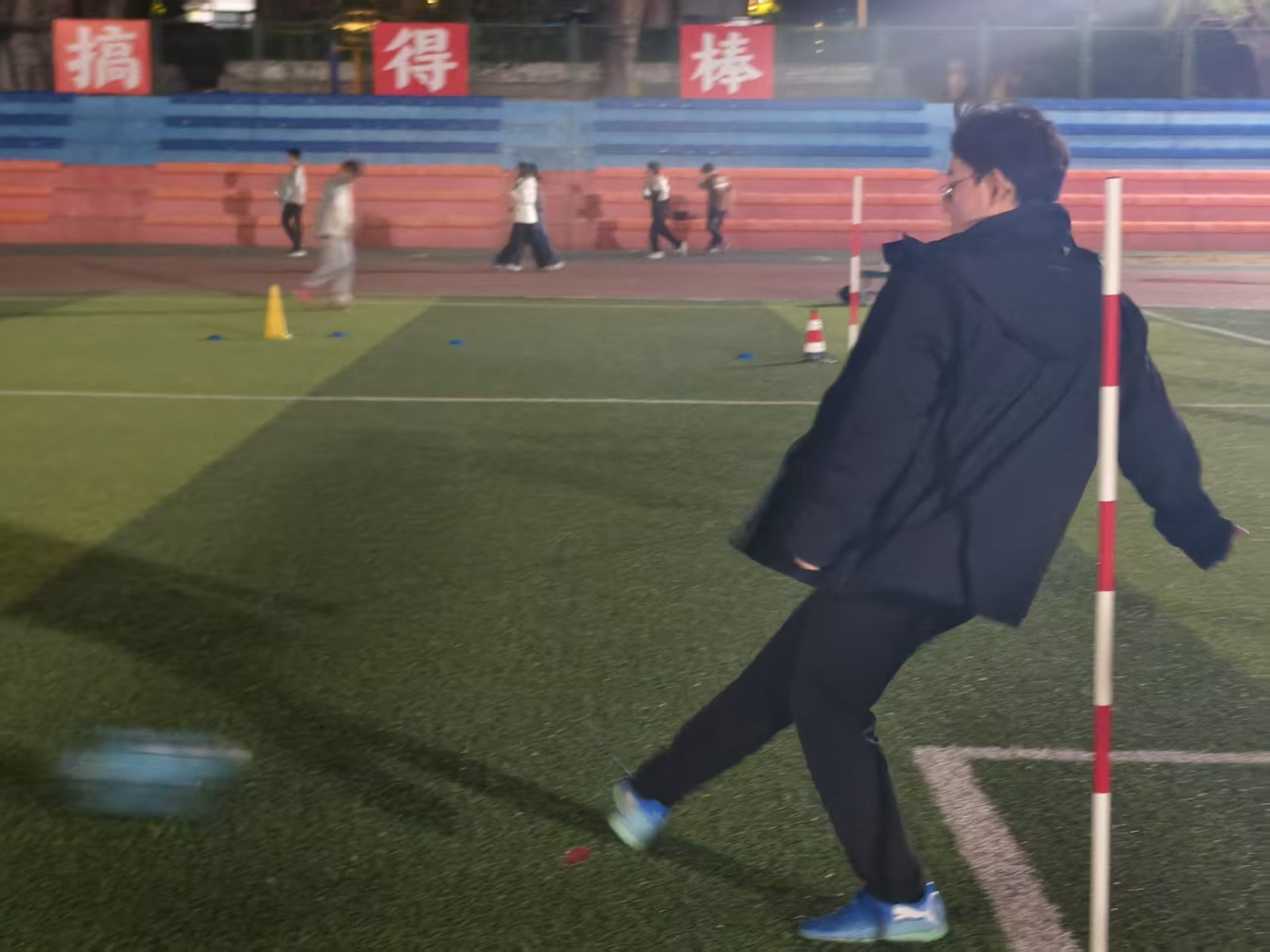 田径场灯光明亮,“跬步计划”足球接力训练不停。同学起跑,足球灵动相随。绕过障碍物,眼神专注,控速调力。折返传球,默契交汇、鼓励简短。夜色未减热情,失误不馁,交流技巧,在奔跑接力中,团队凝聚力节节攀升,为赛拼搏!