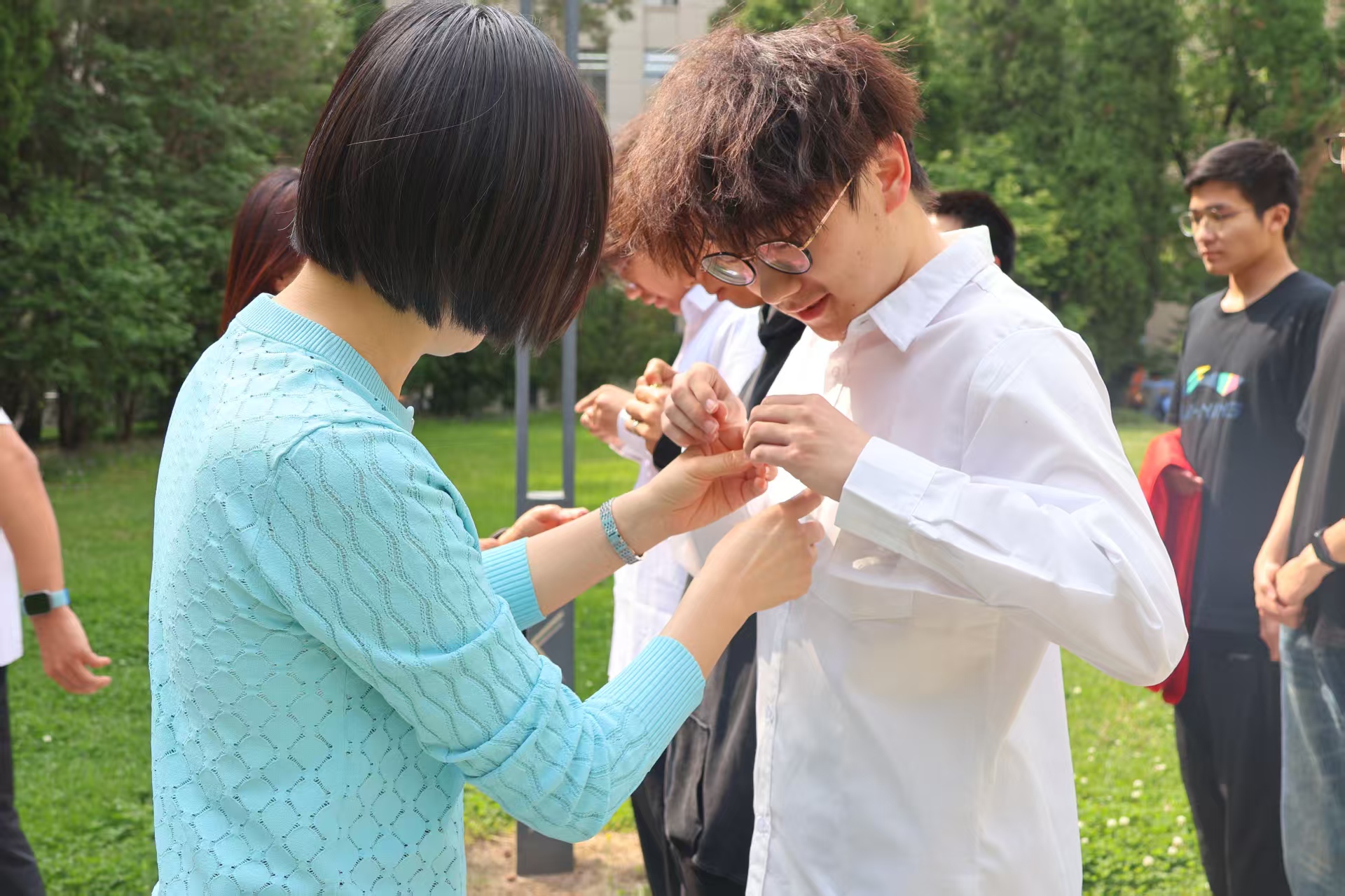 经过个人申请、民主评议和严格的组织考核,李睿、史泽林、李佳锐三名优秀青年脱颖而出。名单宣读,是身份的转变,更是责任的传承。公司直属党支部书记玄凌以及其他教师为新团员郑重佩戴上闪耀的团徽。徽章贴合胸前,新团员们身姿挺拔,眼神坚定。